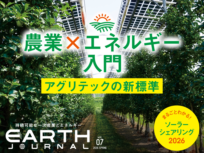 『EARTH JOURNAL』(アースジャーナル)最新号、発売! 営農型太陽光発電(ソーラーシェアリング)の特集号として、約7年ぶりにEARTH JOURNALの発行が決定いたしました。基礎知識から成功事例まで、ソーラーシェアリングの今を取りあげます。